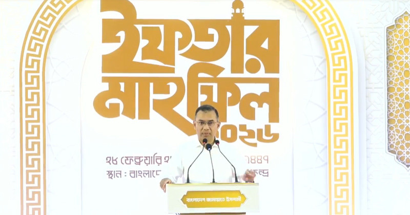 দীর্ঘ রাজনৈতিক পটপরিবর্তনের পর এক অনন্য মুহূর্তের সাক্ষী হলো রাজধানী। বাংলাদেশ জামায়াতে ইসলামী আয়োজিত ইফতার মাহফিলে যোগ দিয়েছেন গণপ্রজাতন্ত্রী বাংলাদেশ সরকারের প্রধানমন্ত্রী তারেক রহমান।