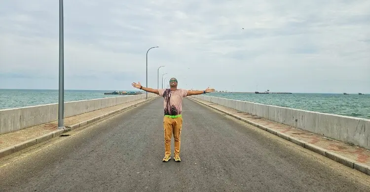আমার সেই যাত্রার দিনটি এখনো স্পষ্ট মনে আছে। দূর থেকে যখন শান্নাহ পোর্টের দিকে এগোচ্ছিলাম; তখনই চোখে পড়ল সমুদ্রের বুক চিরে যেন একটি সরু রাস্তা এগিয়ে গেছে অনেকটা ভেতরে। প্রায় দুই কিলোমিটার লম্বা এই রাস্তা যেন মানুষের সাহস আর প্রকৃতির সাথে তার মেলবন্ধনের এক নিদর্শন। চারপাশে শুধু নীল জল, আর সেই জলের মাঝখান দিয়ে গাড়ি এগিয়ে চলেছে—এই অনুভূতি ভাষায় প্রকাশ করা সত্যিই কঠিন। মনে হচ্ছিল, যেন পৃথিবীর শেষ প্রান্তের দিকে এগিয়ে যাচ্ছি; যেখানে আকাশ আর সমুদ্র একাকার হয়ে গেছে।